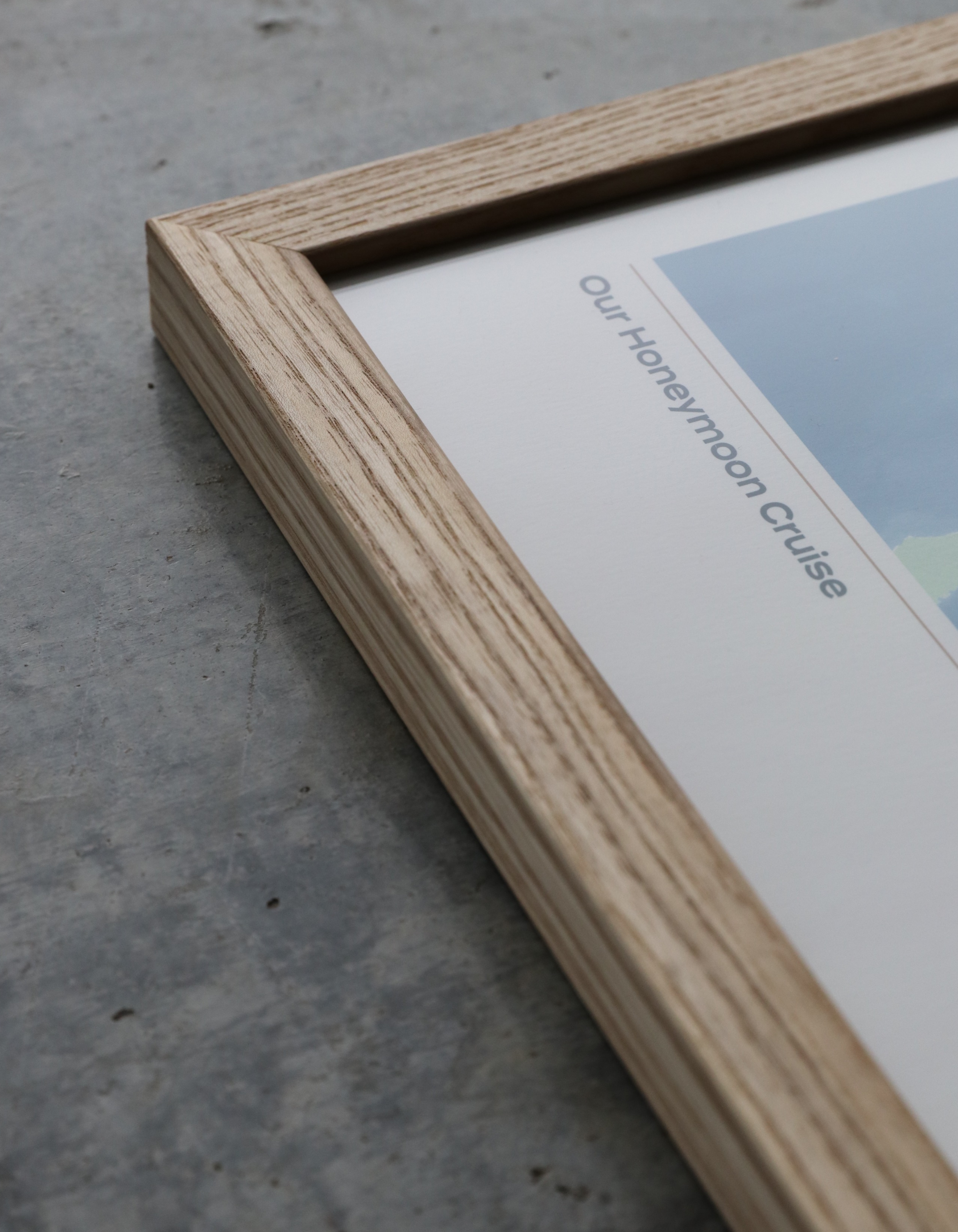 As with any fully bespoke product, we make each map individually to order. We take special care to ensure the accuracy and quality of your map. We aim to create maps within 3 business days from when you place your order. (This does not include pre-ordered maps which will be made in the 3 business days following your disembarkation.) It then takes a further 3 business days for your map to be printed (and framed), and undergo final quality assurance checks in one of our expert facilities before being dispatched.