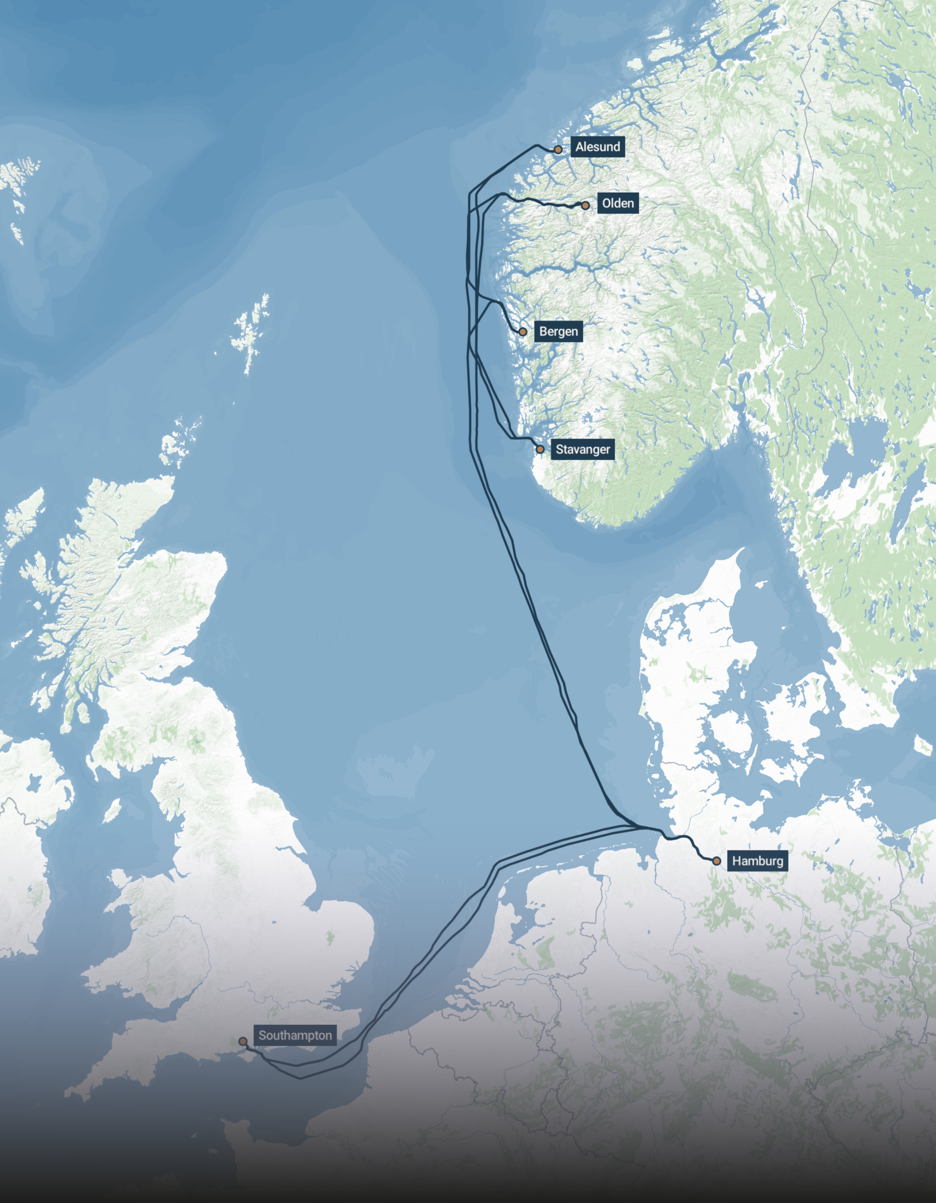 The AIS dataset we use to map the exact route of your cruise starts in January 2015. You can still order a map for a cruise which took place before 2015. We will ask you for a list of the ports you visited (once you’ve placed your order) and we will reconstruct an accurateestimatedroute of your cruise based on our huge satellite dataset from more recent cruises.