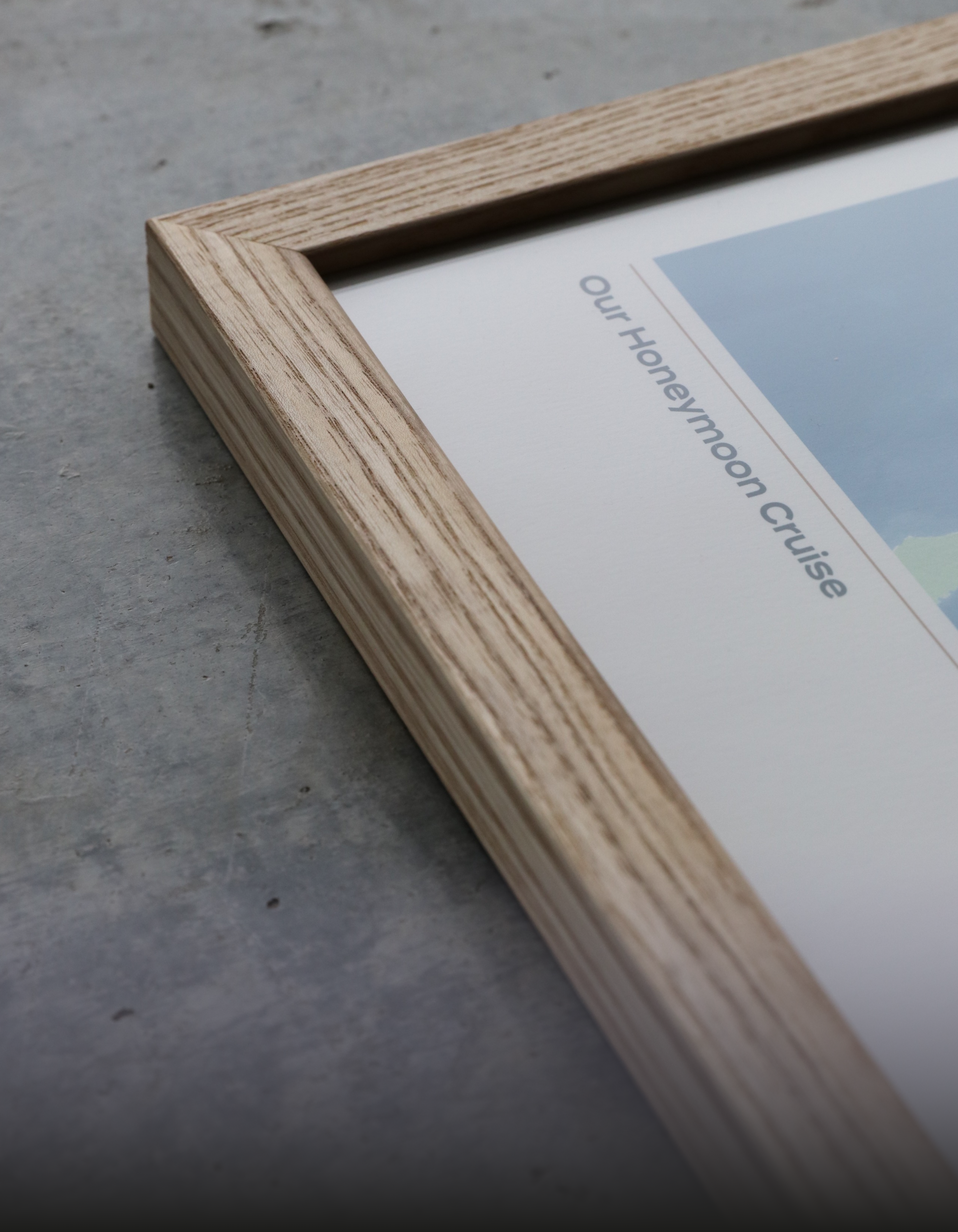 As with any fully bespoke product, we make each map individually to order. We take special care to ensure the accuracy and quality of your map. We aim to create maps within 3 business days from when you place your order. (This does not include pre-ordered maps which will be made in the 3 business days following your disembarkation.) It then takes a further 3 business days for your map to be printed (and framed), and undergo final quality assurance checks in one of our expert facilities before being dispatched.