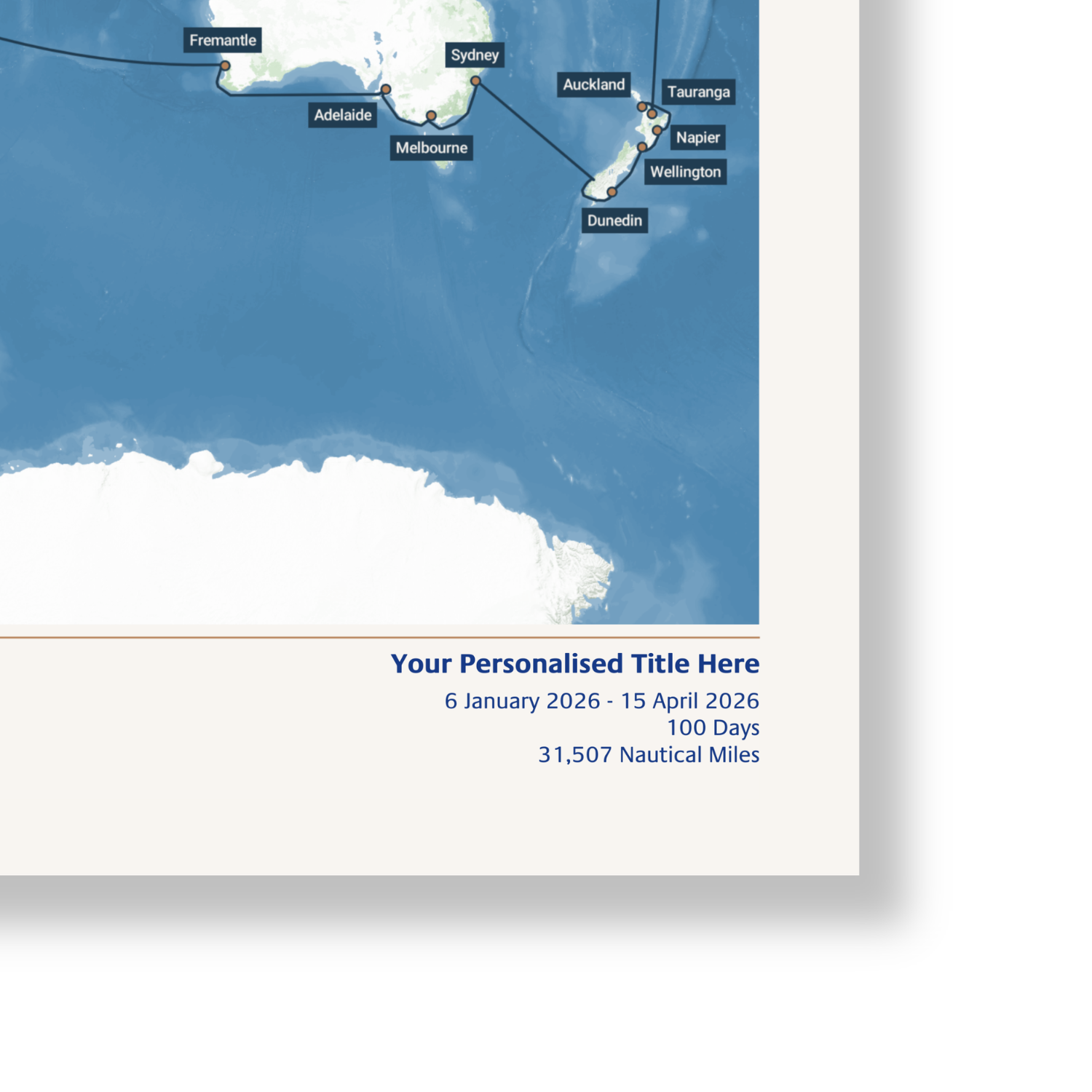 Celebrate the 2026 World Cruise of P&O Cruises' Arcadia, with this Special Edition printed map. Created using AIS (satellite ship-tracking) data, this map will show the exact route taken. This Special Edition design features an exclusive voyage-specific inlay, P&O Cruises' official Arcadia ship profile, and Captains' signatures. Simply give your map a personalised title, and we'll do the rest.