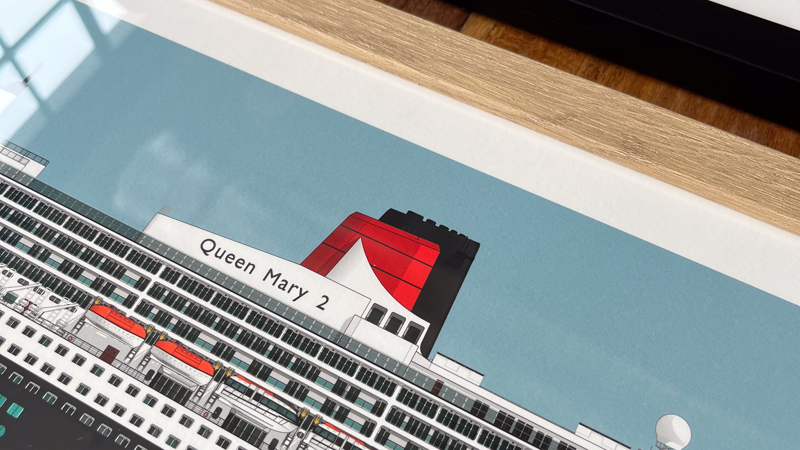 Complete with delightful fine details of this famous ship, this scale portrait is the ultimate collector’s item and is also signed by Stephen Payne OBE, the lead designer of Queen Mary 2. This print will capture the imagination of art lovers and the most erudite of naval modellers alike.