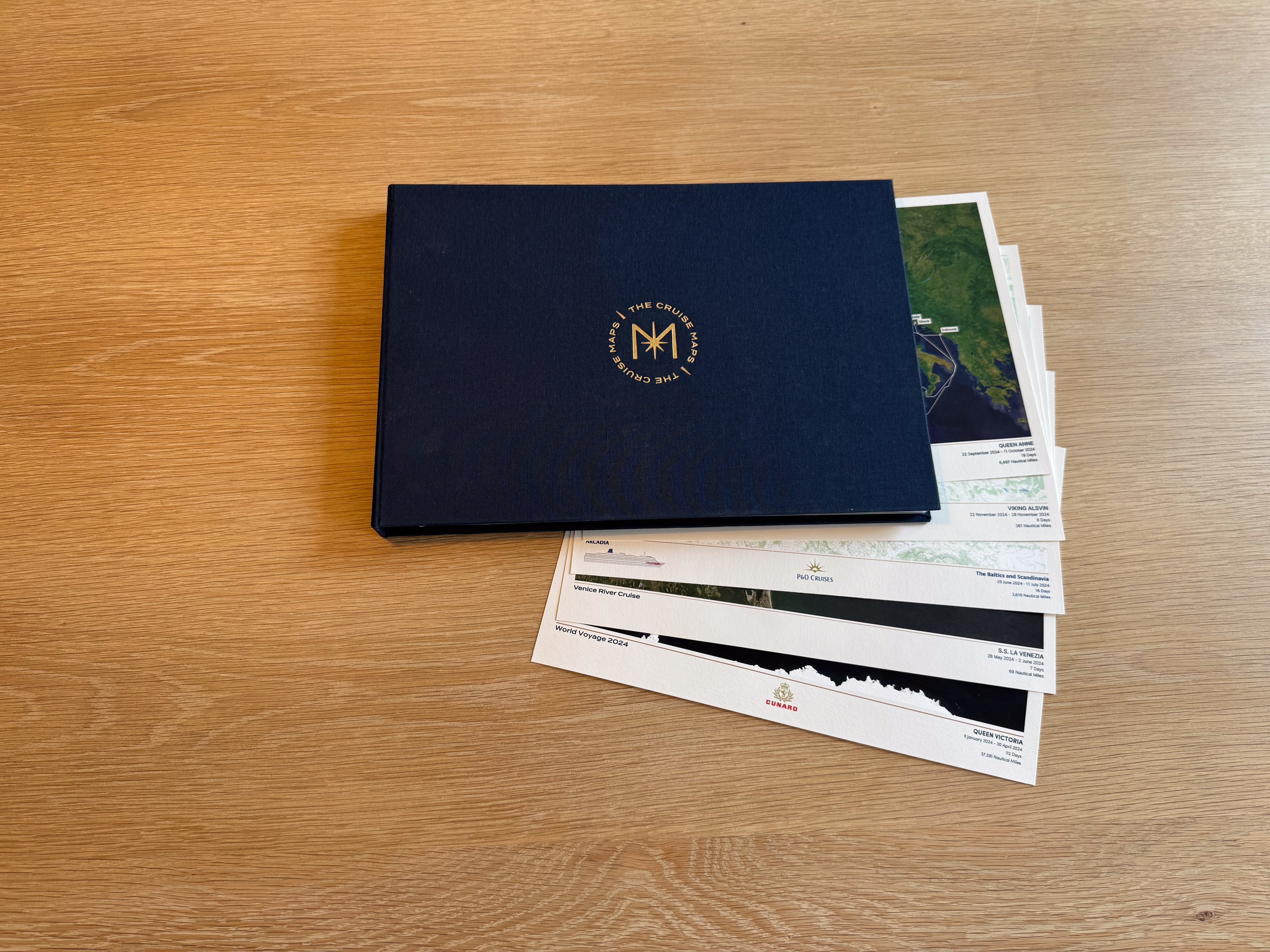 The Cruise Album is designed to display 25 'Album Size' (A4) cruise maps (sold below) in archival-quality sleeves. Every part of this album was designed and crafted by hand in the UK.