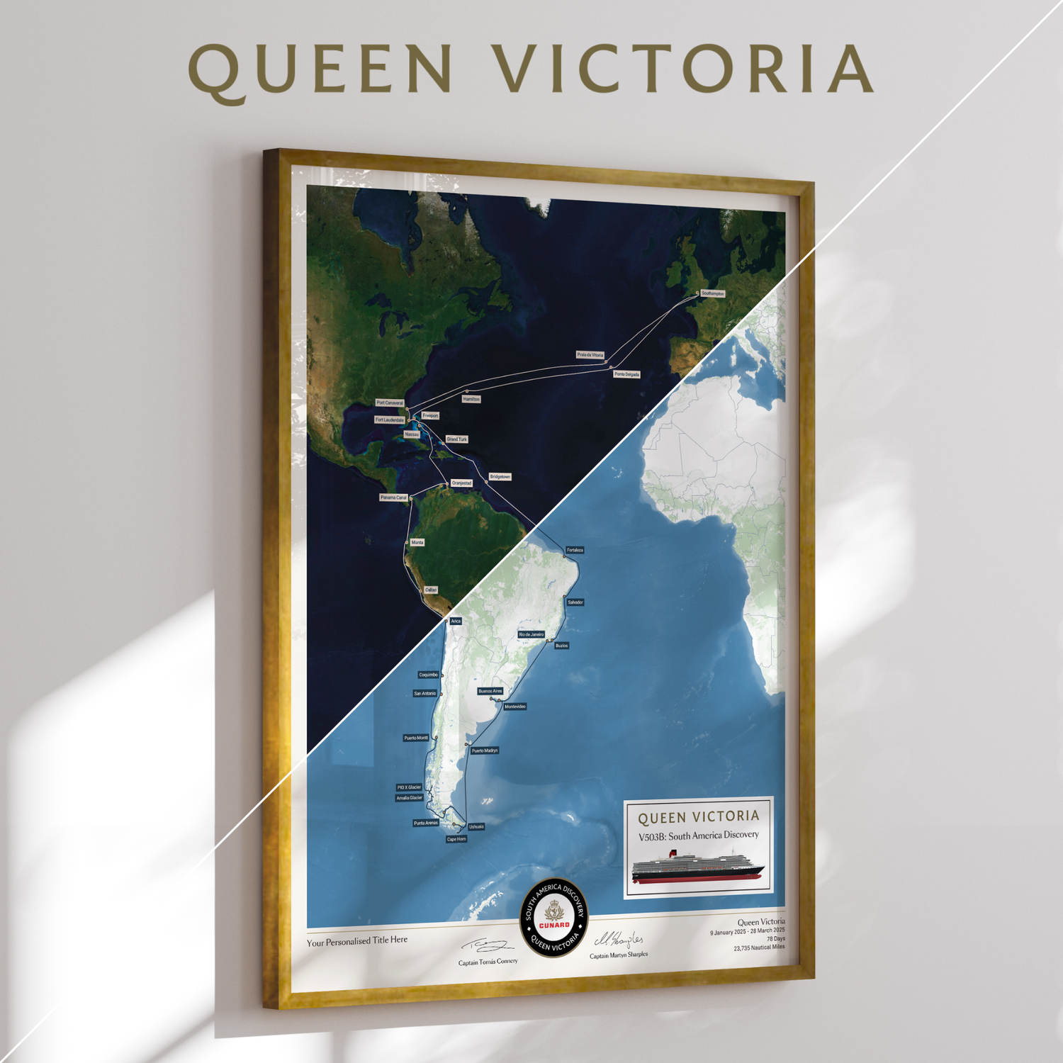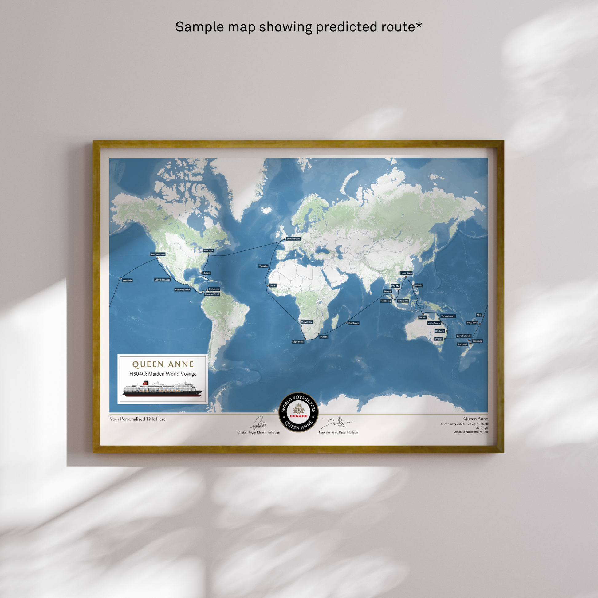 Celebrate the maiden World Voyage of Cunard's newest ship, Queen Anne, with this Special Edition printed map. Created using AIS (satellite ship-tracking) data, this map will show the exact route taken. This Special Edition design features an exclusive voyage-specific inlay, Cunard's official Queen Anne ship profile, and Captains' signatures. Simply give your map a personalised title, and we'll do the rest.
