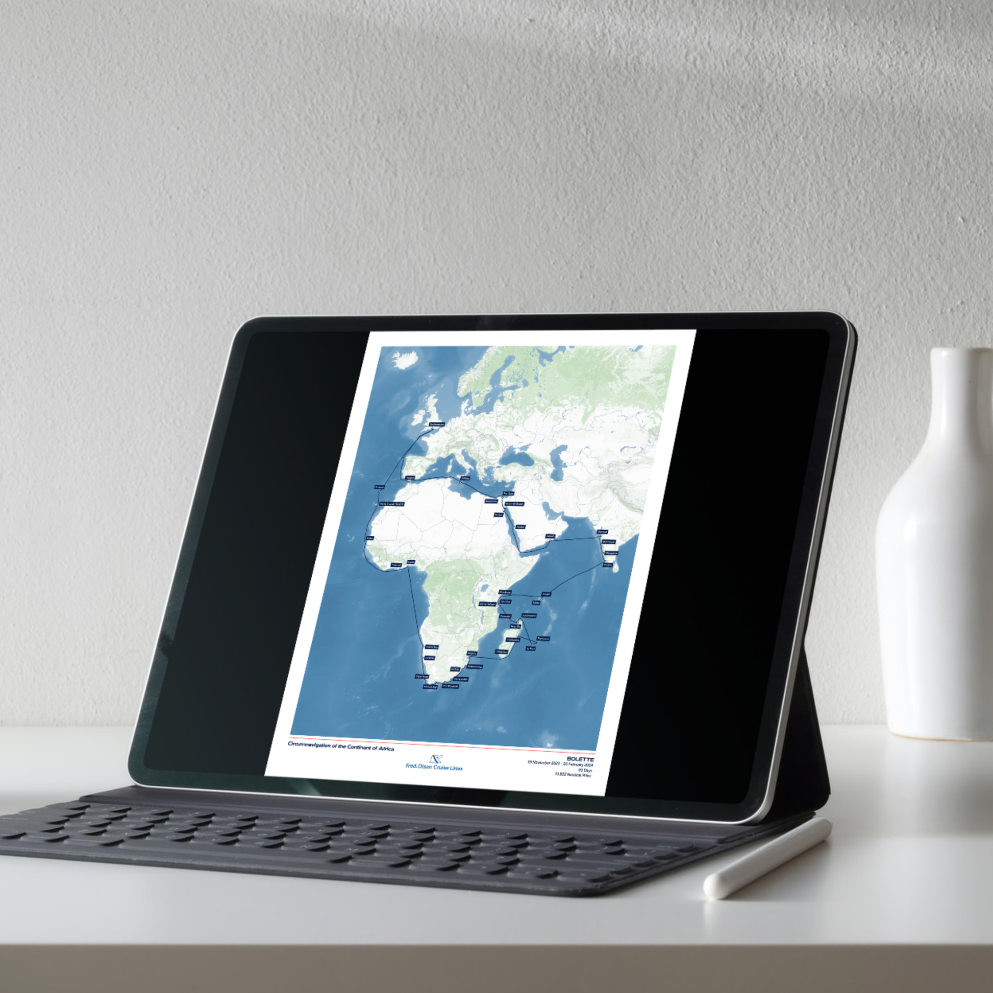 Template suffix: fred-olsen-map-product Show disclaimer: true Media type: imageAll maps shown in these images are sample routes. When you order a map, we guarantee that it will show your exact route.